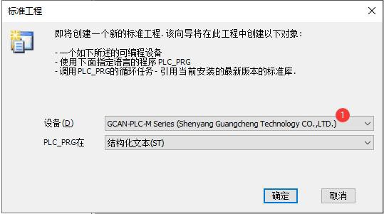 菜單工具欄->文件->新建工程,創(chuàng)建Standard project,設(shè)備選擇“GCAN-PLC-M”,如下圖所示。