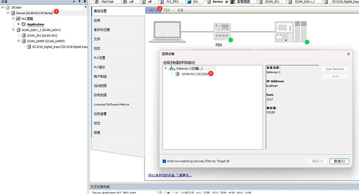 (2)添加PLC設(shè)備(GCAN-PLC-324為例)
