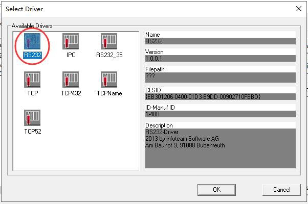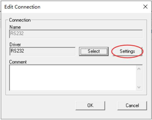 5、Driver中會顯示“RS232”字樣,點(diǎn)擊“Settings(設(shè)置)”按鈕。