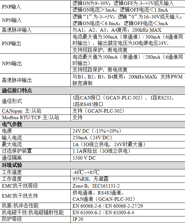 GCAN-PLC-302接口定義