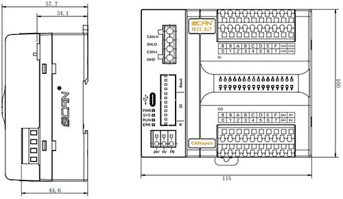 GCAN-4032遠(yuǎn)程IO是我公司基于CANopen總線自主研發(fā)的高性能總線同用遠(yuǎn)程IO模塊,為用戶節(jié)約成本,簡(jiǎn)化配線,提高系統(tǒng)可靠性,系統(tǒng)自帶16路DI和16路DO(輸出默認(rèn)晶體管PNP型,可選NPN型;輸入可通過(guò)接線切換源/漏型)。采用GCAN-4032模塊,用戶可用于采集數(shù)字量輸入信號(hào),并輸出數(shù)字量信號(hào),控制開(kāi)關(guān),實(shí)現(xiàn)遠(yuǎn)程開(kāi)關(guān)設(shè)備和CANopen網(wǎng)絡(luò)之間的連接,構(gòu)成CANopen網(wǎng)絡(luò)中數(shù)據(jù)量信號(hào)采集、輸出的控制節(jié)點(diǎn)。