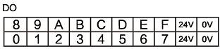 GCAN-4032的主控模塊含有上下四排端子排,下方兩排端子排為DO端子排,分別為DO0~DO7,DO8~DOF共16個(gè)數(shù)字量輸出點(diǎn),以及2組IO工作電源接口(請(qǐng)任選1組IO工作電源接口接入24V即可,注意同時(shí)需要接入系統(tǒng)電源,系統(tǒng)電源詳見(jiàn)下表,IO工作電源與系統(tǒng)電源彼此隔離),如圖所示。各個(gè)端子對(duì)應(yīng)的序號(hào)及其含義如下表所示。