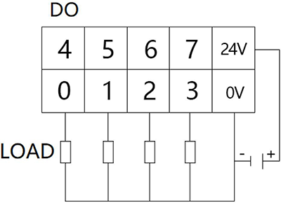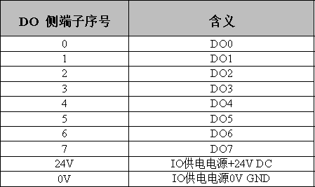 GCAN-PLC-230的主控模塊右側(cè)頂板含有上下四排端子排,下方兩排端子排的右側(cè)為DO端子排,分別為DO0~DO7共8個(gè)數(shù)字量輸出點(diǎn),以及1組IO供電電源接口(IO供電電源已與系統(tǒng)電源隔離,IO模塊需供電后才能正常工作),如圖所示。各個(gè)端子對(duì)應(yīng)的序號(hào)及其含義如下表所示。