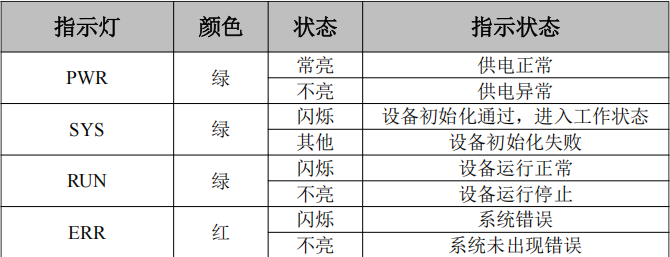 GCAN-PLC-230 PLC模塊有兩組指示燈,分別為系統(tǒng)狀態(tài)指示燈和IO指示燈。系統(tǒng)狀態(tài)指示燈具有1個(gè)PWR指示燈、1個(gè)SYS指示燈、1個(gè)RUN指示燈、1個(gè)ERR燈來(lái)指示設(shè)備的運(yùn)行狀態(tài)。