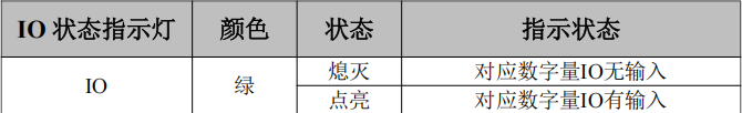 IO指示燈用來(lái)指示設(shè)備數(shù)字量IO的運(yùn)行狀態(tài)(模擬量IO無(wú)指示燈)