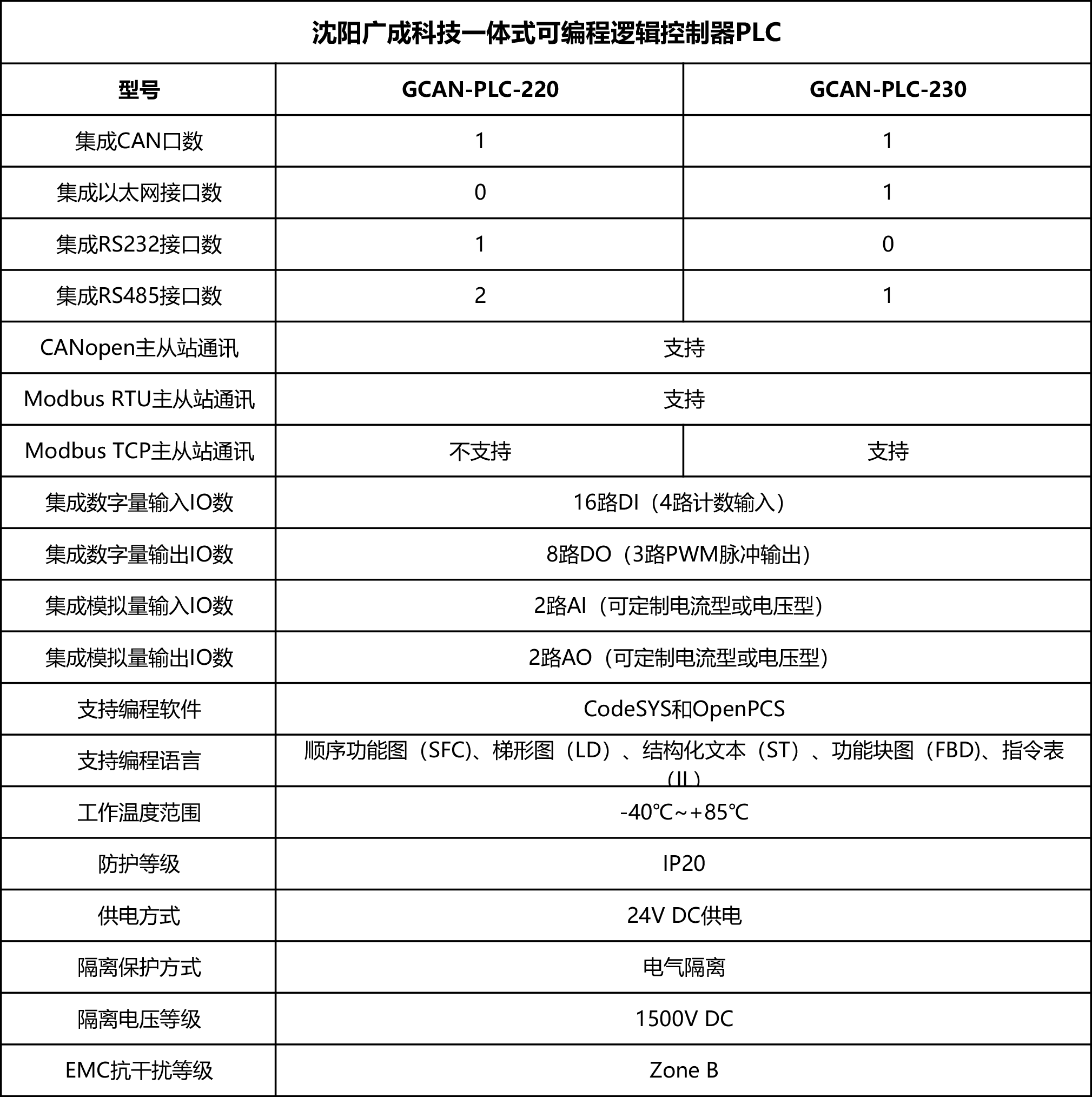 GCAN-PLC-230型一體式PLC控制器的設(shè)備參數(shù)包括: