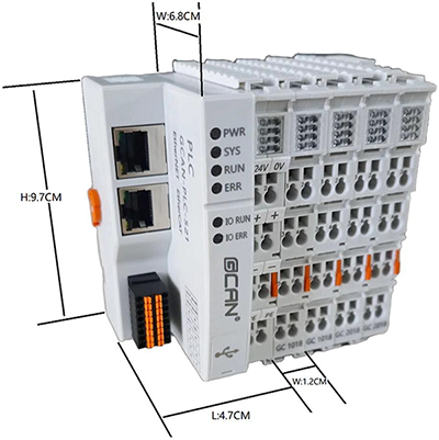 圖2.1 GCAN-PLC外觀及尺寸圖