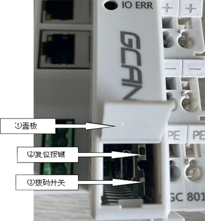 2.設(shè)備上電后,長按復(fù)位鍵直至ERR指示燈閃爍,可將PLC的IP地址恢復(fù)為出廠設(shè)置:192.168.1.30/192.168.2.30。