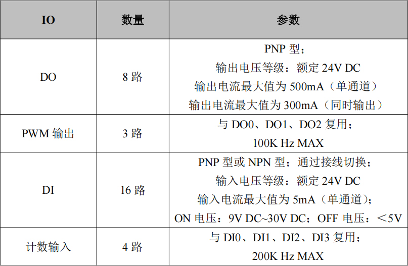 (4)8路DO(復(fù)用3路PWM脈沖輸出);16路DI(復(fù)用4路計數(shù)輸入);