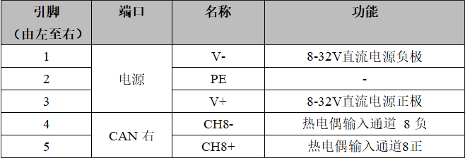 4路熱電偶輸入、CAN-bus接口定義
