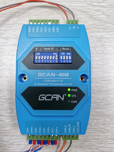 沈陽(yáng)廣成科技GCAN-4048模塊是集成1路標(biāo)準(zhǔn)CANopen接口、8路熱電偶輸入的工業(yè)級(jí)CANopen模擬量采集模塊。采用GCAN-4048模塊,用戶可同時(shí)采集8路信號(hào),實(shí)現(xiàn)遠(yuǎn)程模擬量采集設(shè)備和CANopen網(wǎng)絡(luò)之間的連接,構(gòu)成CANopen網(wǎng)絡(luò)中模擬量信號(hào)采集的控制節(jié)點(diǎn)。GCAN-4048模塊目前支持J型、K型、T型、S型熱電偶,8路可同時(shí)自由配置熱電偶型號(hào),倍數(shù)和偏移量均可自由配置。GCAN-4048模塊是模擬量信號(hào)采集的關(guān)鍵性工具,默認(rèn)上電后自動(dòng)接收數(shù)據(jù),同時(shí)該模塊具有體積小巧、接線便捷等特點(diǎn)。GCAN-4048模塊的總線接口集成隔離保護(hù)模塊,使其避免由于瞬間的過(guò)壓過(guò)流而對(duì)模塊造成損壞。采用DIN導(dǎo)軌的固定方式,可使其更容易集成到各種控制柜中。