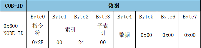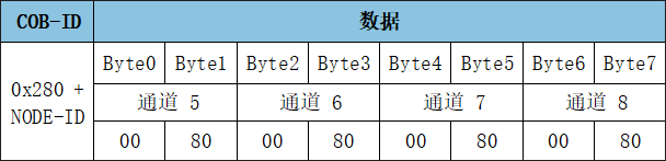 TPDO2命令的幀ID為0x281,數(shù)據(jù)長(zhǎng)度(DLC)為8,幀數(shù)據(jù)為00 80 00 80 00 80 00 80。