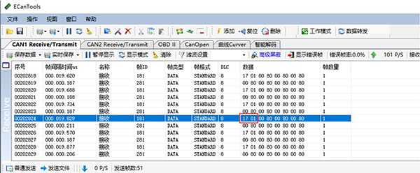 本章將使用廣成科技USBCAN-II Pro模塊及ECANTools軟件可以進(jìn)行CAN總線數(shù)據(jù)的接收與發(fā)送。軟件附帶的CANopen主站功能可以幫助調(diào)試CANopen從站,非常的方便實(shí)用。