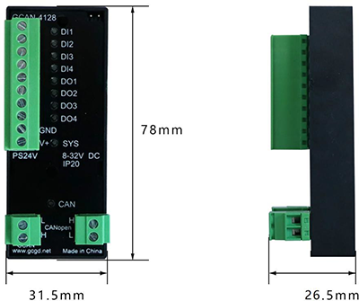 GCAN-4128 4路數(shù)字量輸入4路數(shù)字量輸出CANopen IO耦合器