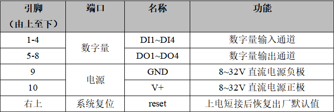 4路數(shù)字量輸入輸出、電源及系統(tǒng)復(fù)位接口定義