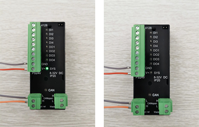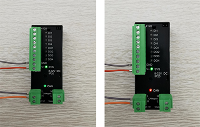 ● GCAN-4128模塊上電,SYS指示燈綠色快閃后,若是默認(rèn)的CANopen模式,SYS指示燈綠色慢閃;若是CAN模式,SYS指示燈綠色常亮。