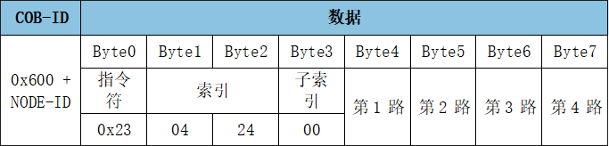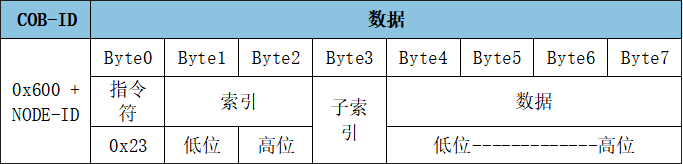 SDO寫入對(duì)象字典中數(shù)據(jù)類型的長度為32位參數(shù)命令: