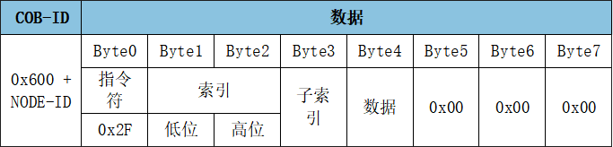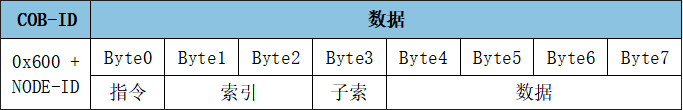 SDO寫入對(duì)象字典中數(shù)據(jù)類型的長度為8位參數(shù)命令: