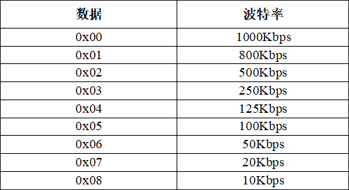 數(shù)據(jù)對(duì)應(yīng)波特率的關(guān)系見下表,其他數(shù)據(jù)不生效。