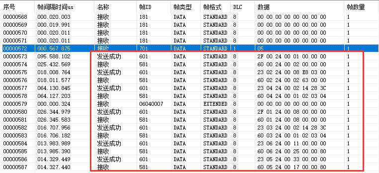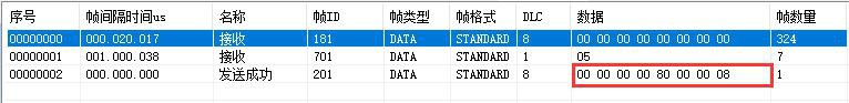 報(bào)文:ID:0x000數(shù)據(jù):01 01,設(shè)置模塊為05啟動(dòng)狀態(tài)。
