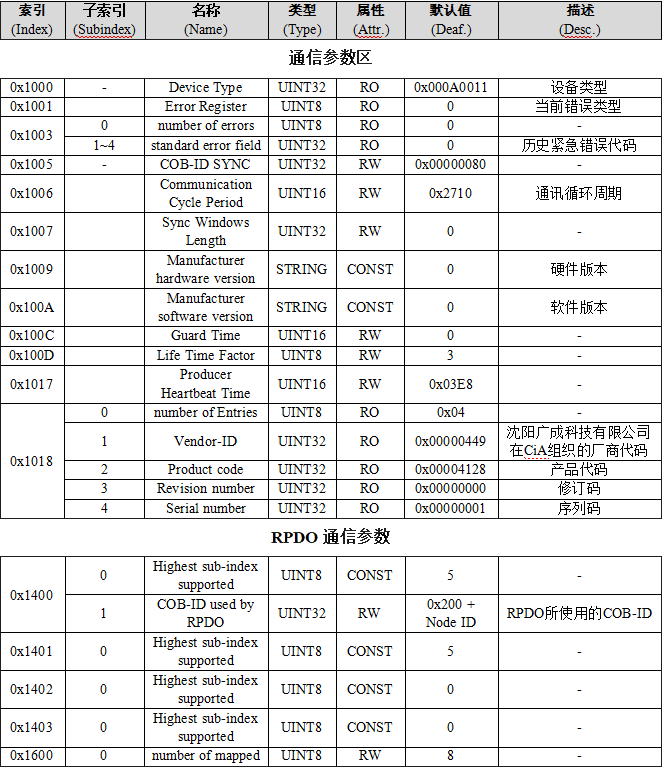 九、GCAN-4128對(duì)象字典