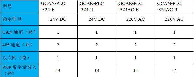 GCAN-PLC-324-E/R系列為滿足多種使用場景,設計為2種供電方式,直流供電型號:GCAN-PLC-324-E/R,交流供電型號GCAN-PLC-324AC-E/R。