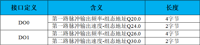 當DO0、DO1作為PWM高速脈沖輸出使用時,其組態(tài)地址如下表所示。