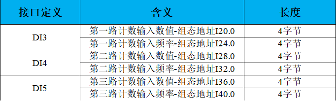 當DI3~DI5作為高速計數(shù)輸入使用時,其組態(tài)地址如下表所示。