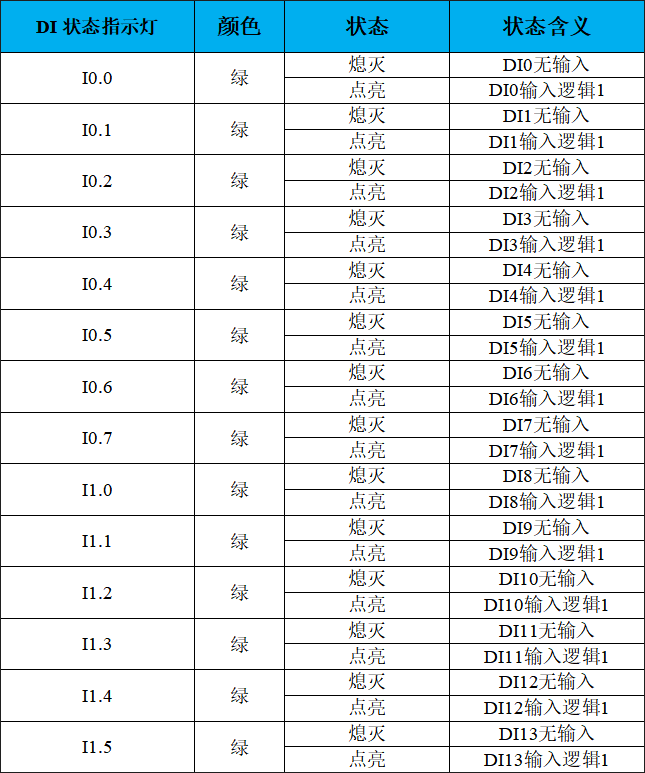 GCAN-PLC-324E/R系列的主控模塊含有上下兩排端子排,下方端子排為DI端子排,分別為I0.0~I0.7,I1.0~I1.5共14個數(shù)字量輸入點,其中DI3~DI5為PNP數(shù)字量輸入與高速計數(shù)輸入復用,以及一組DC 24V電源輸出(并非DO輸出),如圖所示。