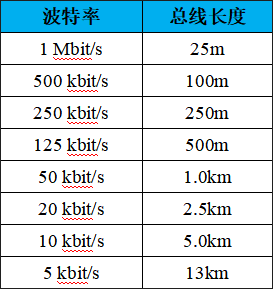 請注意:CAN-bus電纜可以使用普通雙絞線、屏蔽雙絞線。理論最大通信距離主要取決于總線波特率,最大總線長度和波特率關系詳見下表。若通訊距離超過1km,應保證線的截面積大于Φ1.0mm2,具體規(guī)格應根據(jù)距離而定,常規(guī)是隨距離的加長而適當加大。