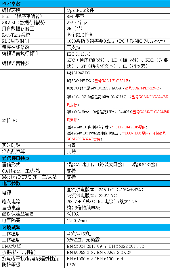 GCAN-PLC-324-E/R系列可使用OpenPCS軟件對其編程,該軟件支持符合IEC-61131-3標準中規(guī)定的五種標準編程語言,這使得程序的可移植性和復用性很強,而且該軟件還具有多種調試功能(斷點、單步等),調試程序更加方便。