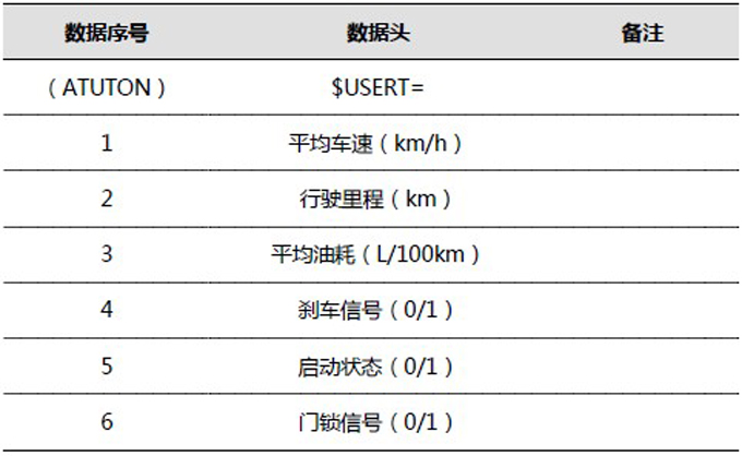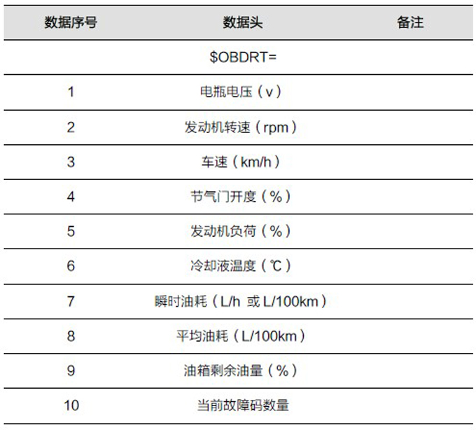 用戶可通過單片機或電腦串口發(fā)送“AT+數(shù)據流名稱”來讀取汽車參數(shù)狀態(tài),下表以汽車實時數(shù)據流為例,讀取汽車基本狀態(tài)信息,串口接收時會以$OBDRT開頭,以下為使用舉例。